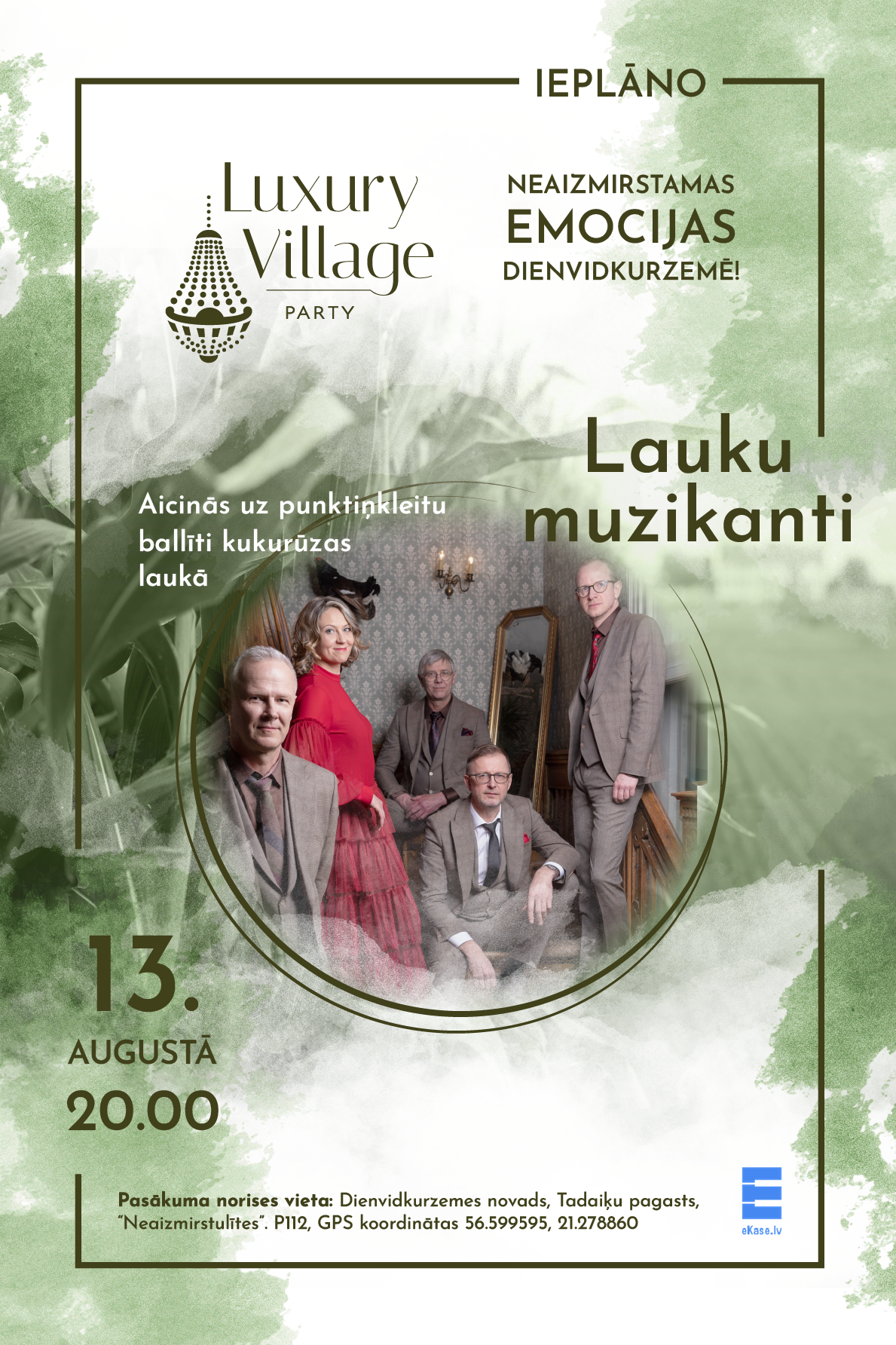 13. augustā pulksten 20 Dienvidkurzemes novada Tadaiķu pagasta saimniecībā "Neaizmirstulītes" notiks trešais "Luxury Village party" koncerts kukurūzas laukā. Tajā spēlēs "Lauku muzikanti". |