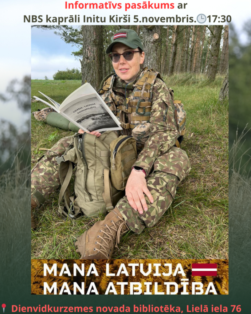 5. novembrī pulksten 17.30 Dienvidkurzemes novada bibliotēkā Grobiņā tikšanās ar NBS kaprāli Initu Kirši. Trešdien, 5. novembrī, pulksten 18 Dienvidkurzemes novada tūrisma centrs aicina ikvienu pievienoties burvīgai novembra Supermēness pastaigai Nīcas pagasta Grīnvaltos. Pārgājiena ilgums – aptuveni viena stunda, dalība bez maksas. Tikšanās vieta… |