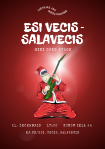 Ceturtdien, 21.decembrī, pulkstem 17 Liepājas “Jauniešu māja”, Kungu ielā 24, norisināsies Open Stage “Esi vecis – salavecis”. Pasākumu apmeklēt tiek aicināti dalībnieki vecumā no 13 līdz 25 gadiem.