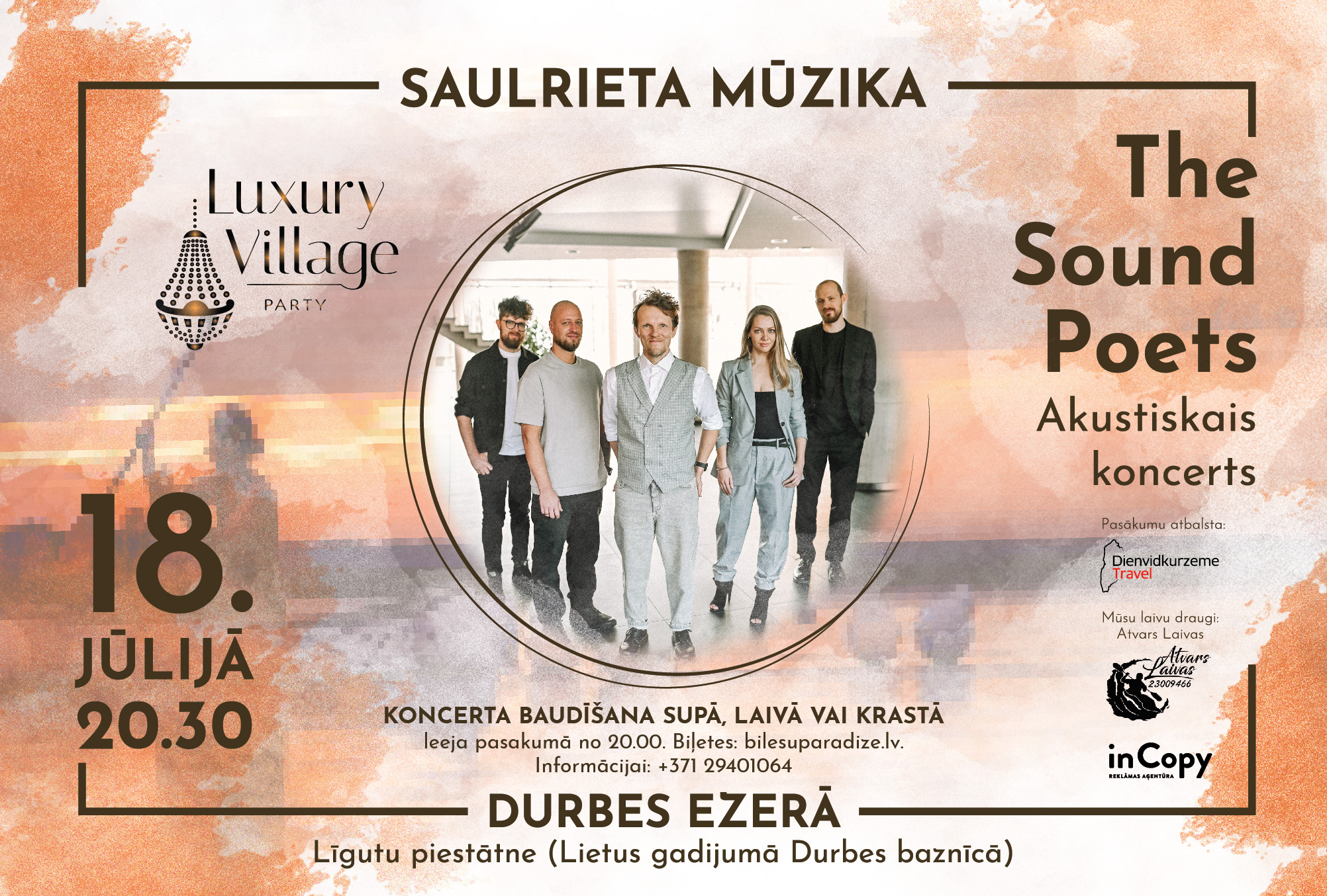 Ceturtdien, 18. jūlijā, pulksten 20.30 Durbes ezerā (pie Līgutu peldvietas) notiks grupas “The Sound Poets” saulrieta koncerts.
