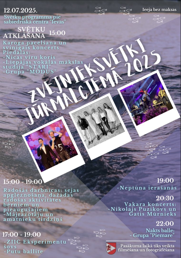 Sestdien, 12. jūlijā, Jūrmalciemā tiks svinēti Zvejnieksvētki, kuros būs dažādas aktivitātes, koncerti un noslēgumā balle.