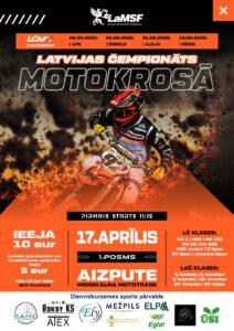 Svētdien, 17. aprīlī, pulksten 11.15 Misiņkalna mototrasē Aizputē notiks Latvijas čempionāta motokrosā pirmais posms.