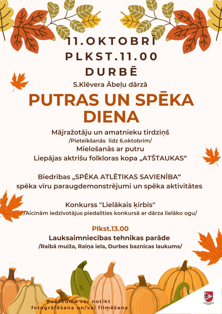 Sestdien, 11. oktobrī, no pulksten 11 Sīmaņa Klēvera ābeļu dārzā Durbē norisināsies ceturtā Putras – spēka diena, lai satiktos un baudītu putru un piedalītos dažādās spēka aktivitātēs kopā ar spēkavīriem.