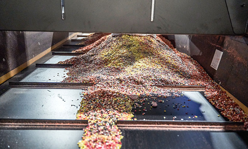 Pēc tam, kad plastmasa tiek vēlreiz sašķirota, to attīra no piejaukumiem, lai pēc tam pārstrādātu granulās, no kurām vēlāk var tikt ražoti jauni plastmasas izstrādājumi.