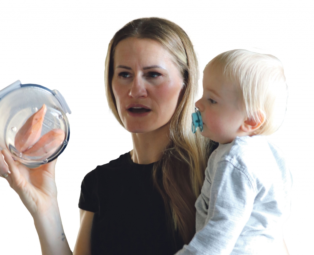 DĀRZEŅU SAGATAVOŠANA. Santa Sīle maltīšu plānošanai izmanto slēgtos traukus. “Kad šķiet, ka nav laika, attaisi ledusskapi, saliec dārzeņus uz cepešpannas, pieliec klāt gaļu, vai olu un cep,” saka S. Sīle. Foto: Loreta Jargane