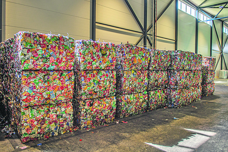 Tālāk pudeles sadala pēc plastmasas krāsas, un šis process tiek atkārtots divas reizes, galarezultātā nodrošinot tīrus, pēc krāsas sašķirotus iepakojumus. Caurspīdīgās pudeles ir vērtīgākas jeb dārgākas, jo, tās pārstrādājot, var uztaisīt jebkādu pudeli, bet no brūnā un zaļā PET iepakojuma – tikai attiecīgās krāsas iepakojumus. Pēc tam pudeles tiek sapresētas. Katra sapresētā ķīpa tiek nosvērta, numurēta, un tai piešķir svītru kodu, kas ļauj sekot līdzi pārstrādātajiem apjomiem. Mēnesī no iepakojumu uzskaites un šķirošanas centra tiek izvests 1400 tonnu pārstrādei paredzētā materiāla.