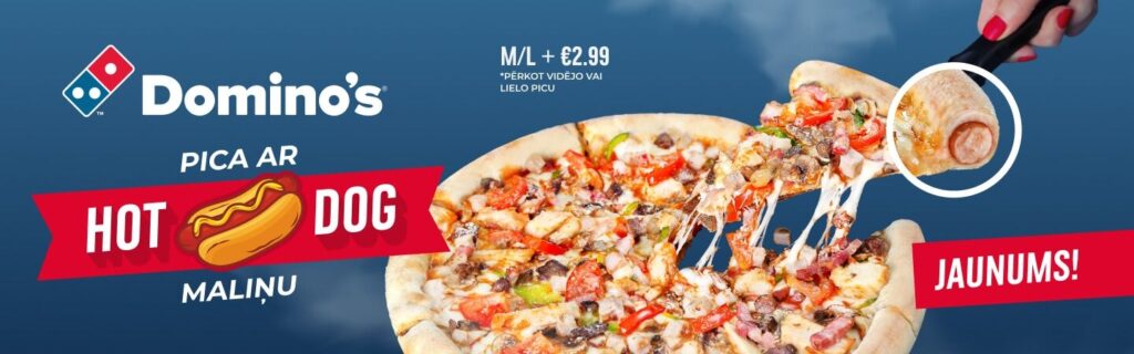 Lai pasūtītu picu ar hotdoga maliņu, Jūs maksājat +2.99€ papildus Jūsu izvēlētās vidējās vai lielās picas cenai. Ne garām iespēju nogaršot atkal Domino’s picu!
