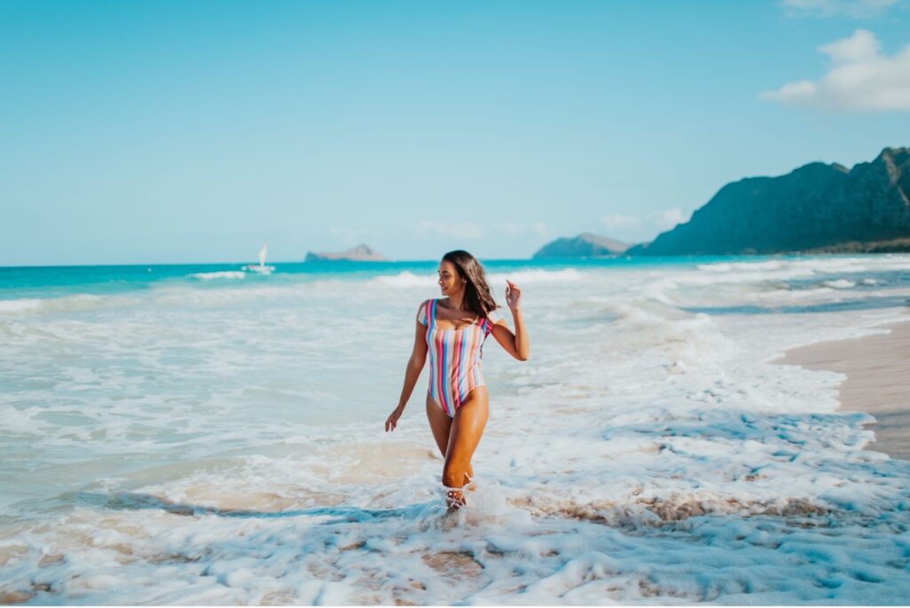 Izvēlies neona krāsas, izpaudies ar statement stila uzrakstiem, eksperimentē ar kliedzošiem slaveniem zīmoliem (un ne vienmēr slaveniem dizaineru zīmoliem!). Galu galā neaizmirstiet par klasiskajiem atvaļinājuma rakstiem: ziedi, tauriņi vai ornamenti, kas atgādina eksotiskas zemes, var izskatīties ārkārtīgi moderni. Vai jūtaties nostalģiski? Sarkans peldkostīms ir lieliska izvēle, kas atgādinās par leģendāro seriālu Glābēji.