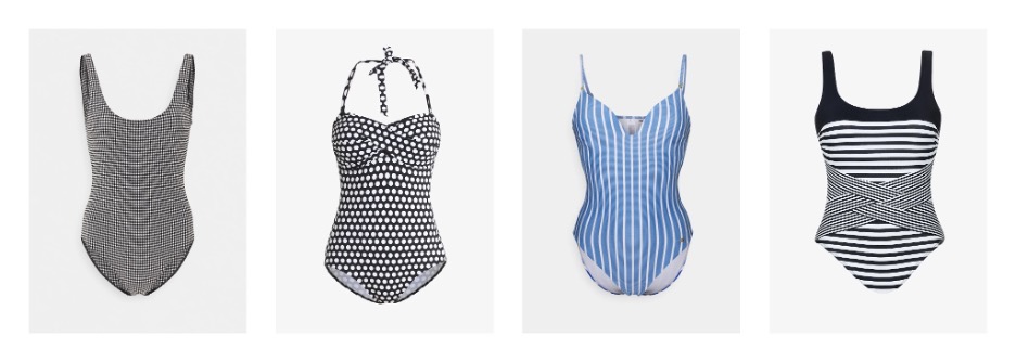 Neatkarīgi no tā, kādu stilu izvēlaties katru dienu, ģeometriskie raksti – ārkārtīgi elastīga izvēle. Svītras – neatņemams piejūras atribūts, pie kurām ērti pieskaņot pludmales rokassomu vai tāda paša stila čības. Alternatīvo stilu cienītājas šosezon izvēlas rūtainu audumu, radot asociāciju ar grunge stilu, rokmūziku un rūtainiem krekliem (apsedziet ar tiem plecus, ja pūš vējš vai cepina saule!). Savukārt, punktots peldkostīms lieliski izskatīsies kopā ar mušu stila saulesbrillēm vai cepuri ar platām malām – eleganta klasika, kas nekad nemirst.