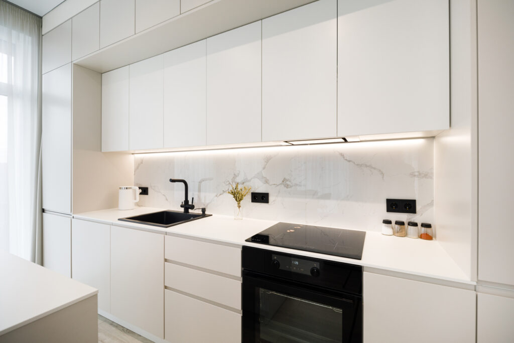 Kvalitatīvs virtuves apgaismojums šajās vietās nodrošina vienmērīgu gaismu bez asiem kontrastiem un ēnām, padarot ikdienas darbus vieglākus un patīkamākus.