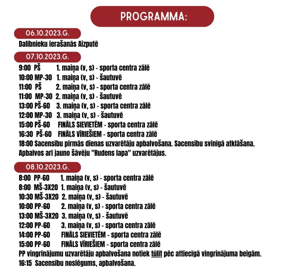 A. Manfelda piemiņas sacensības notiks Aizputes sporta centrā “Lejaskurzeme” un Aizputes šautuvē.
