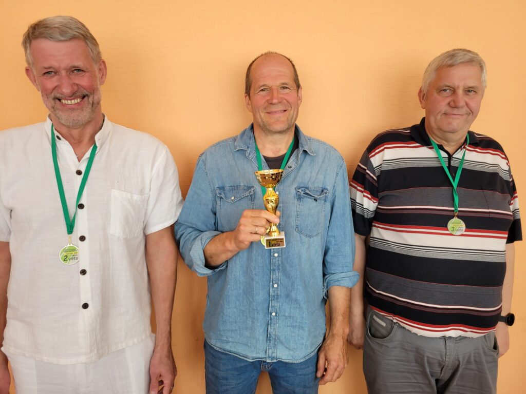 Vīriešiem Aizputes pilsētas svētku šaha turnīrā uzvarēja skrundenieks Raitis Strazdiņš, otrais bija ventspilnieks Jānis Isakovs, bet trešo vietu ieguva Skrundas šahists Aivars Rudzroga.