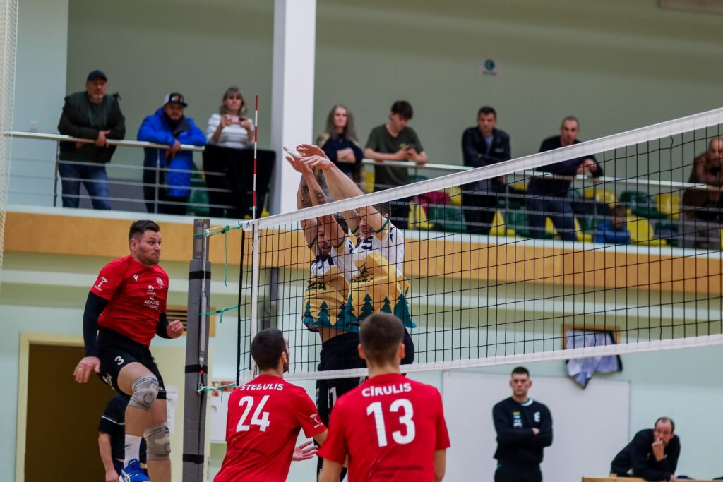 Pirmajā spēlē 7. novembrī Līgatnes novada sporta centrā ar 3:2 (25:20; 19:25; 25:15; 22:25; 15:10) uzvarēja “MĪ/Līgatne” volejbolisti.