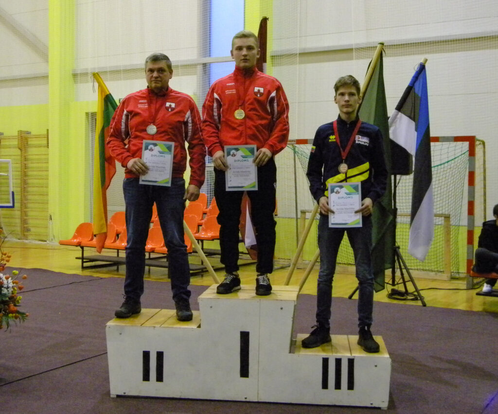 Vīriešu konkurencē šajā vingrinājumā mājiniekiem bija dubultuzvara. Uz goda pjedestāla augstākā pakāpiena ar augstu rezultātu kāpa Jānis Lasmanis (575), bet otrais bija Raivis Balodis (557), aiz sevis trešajā vietā atstājot sportistu no Šauļiem.