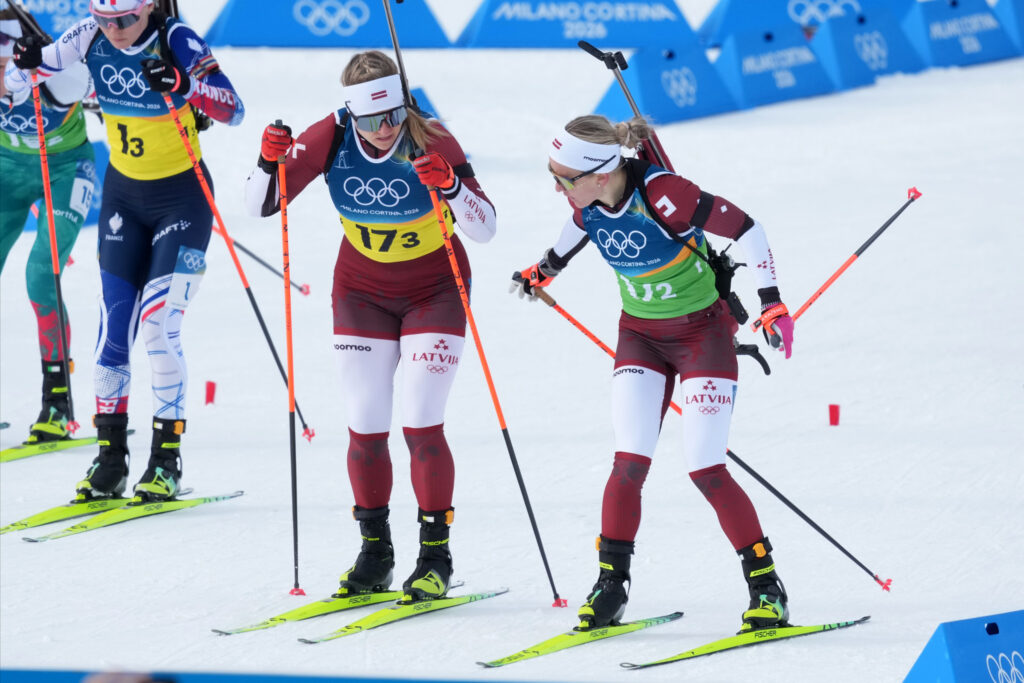 Latvijas sportistes, kuras mēroja trīs soda apļus un pielietoja 14 rezerves patronas, uzvarētājām zaudēja piecas minūtes un 36,7 sekundes.