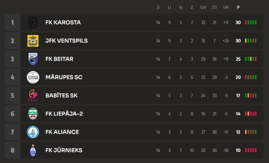 Svētdien, 17. septembrī, FK “Karosta” Latvijas futbola čempionāta otrajā līgā devās “izbraukumā” tepat pie FK “Liepāja-2” komandas. Spēle noslēdzās ar 3:2 Karostas labā, kas nozīmē, ka karostnieki ne tikai uzvarēja šo spēli, bet arī čempionāta pirmo posmu Rietumu zonā noslēdz kā uzvarētāji ar 30 punktiem un 32 gūtiem vārtiem!