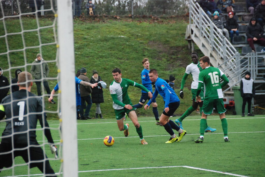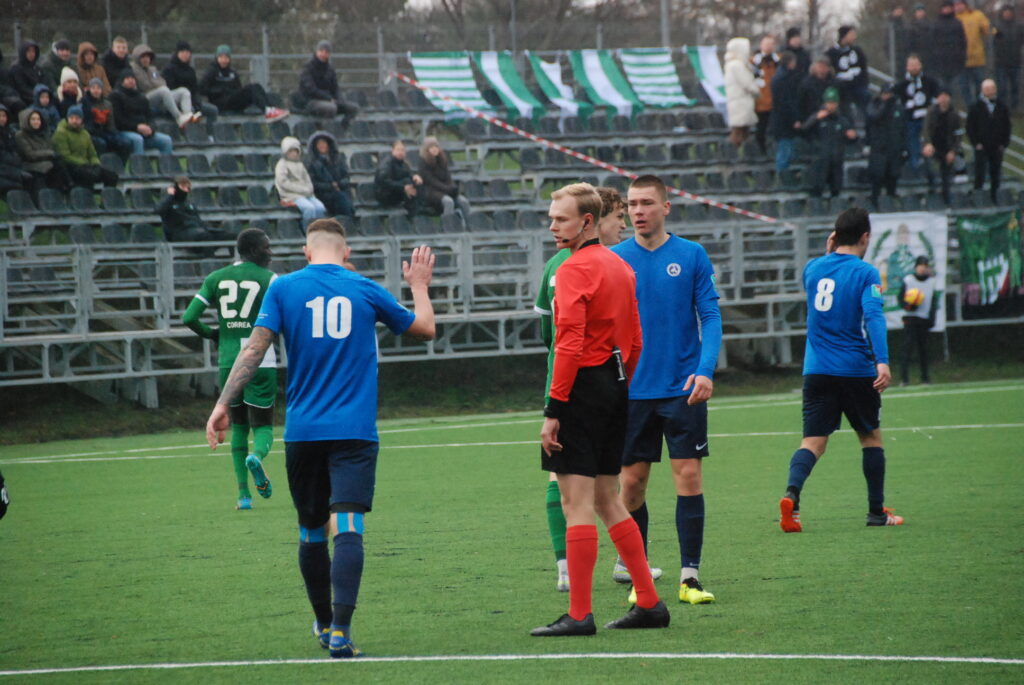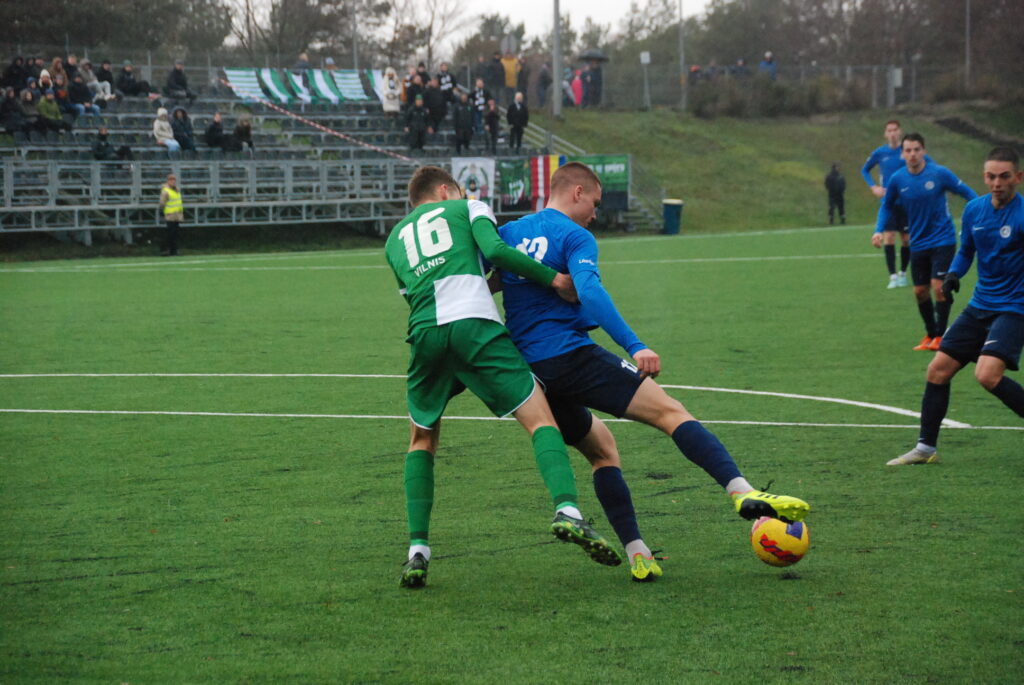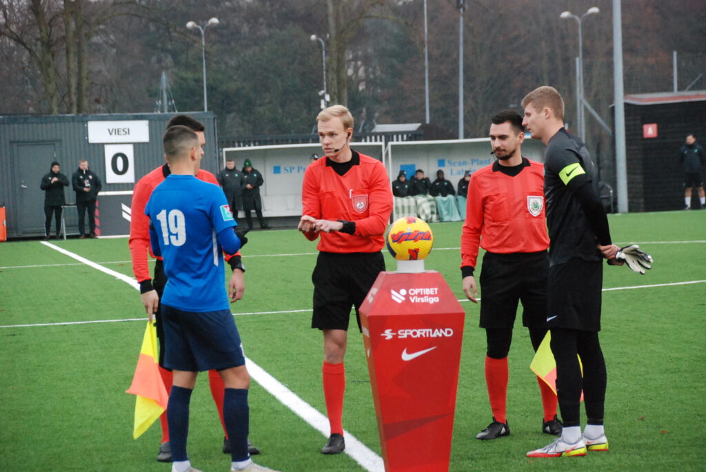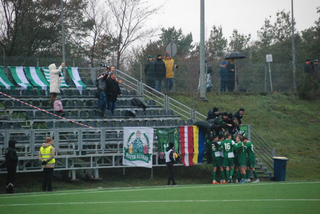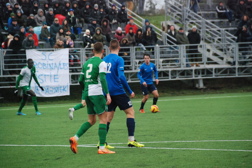“Grobiņas SC/LFS” futbolisti svētdien, 27. novembrī, Liepājas stadiona “Daugava” rezerves laukumā aizvadīja atbildes spēli ar virslīgas komandu “Metta” cīņā ar vietu Latvijas futbola virslīgā.
