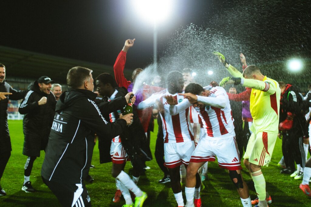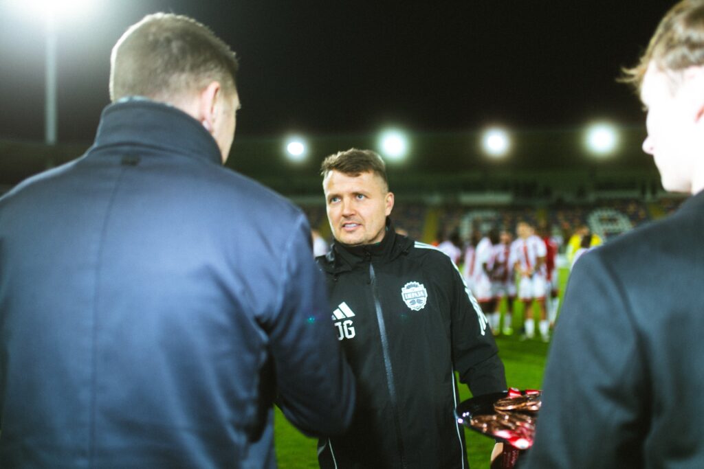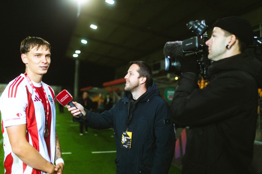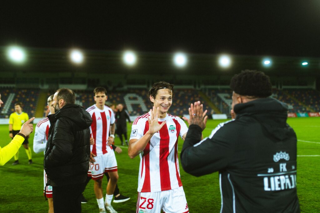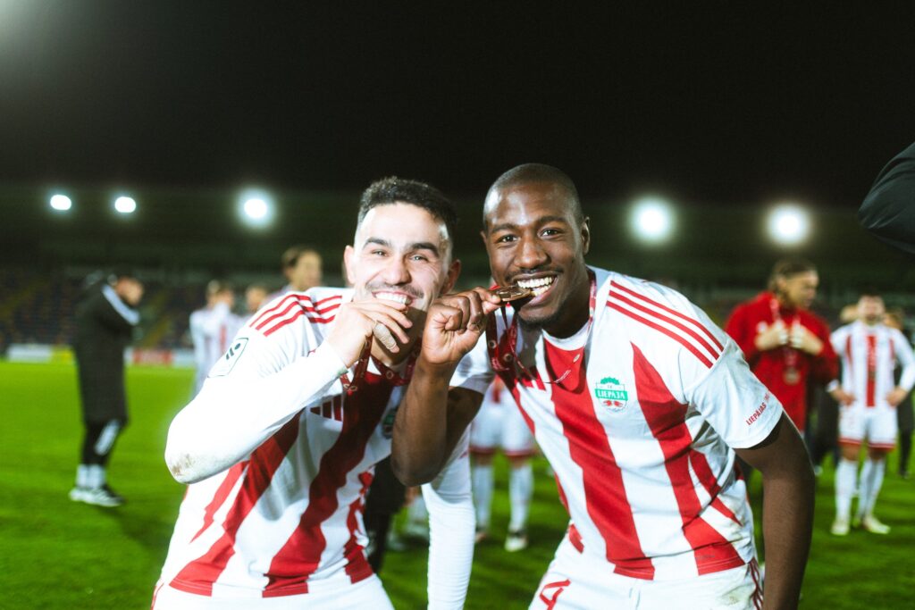 “Liepājas” futbolisti pirmdien ar uzvaru Rīgā trīs kārtas pirms “Tonybet” futbola virslīgas beigām nodrošināja bronzas medaļas.