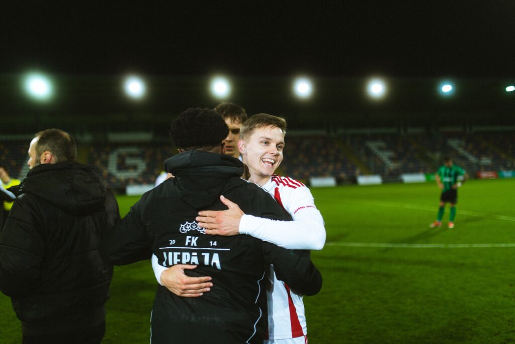 “Liepājas” futbolisti ir nodrošinājuši trešo vietu, par desmit punktiem apsteidzot “Daugavpili”, bet “Auda” cīņā par ceturto vietu, kas nākamsezon ļaus spēlēt UEFA Konferences līgas kvalifikācijā, ja uz šo turnīru ceļazīme netiks izcīnīta Latvijas kausa finālā, par trim punktiem atpaliek no “Daugavpils”.