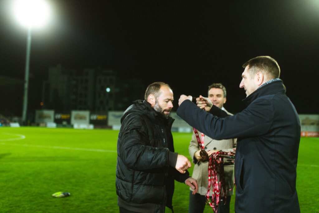 FOTO: "Liepājas" futbolisti nodrošina Latvijas čempionāta bronzas medaļas