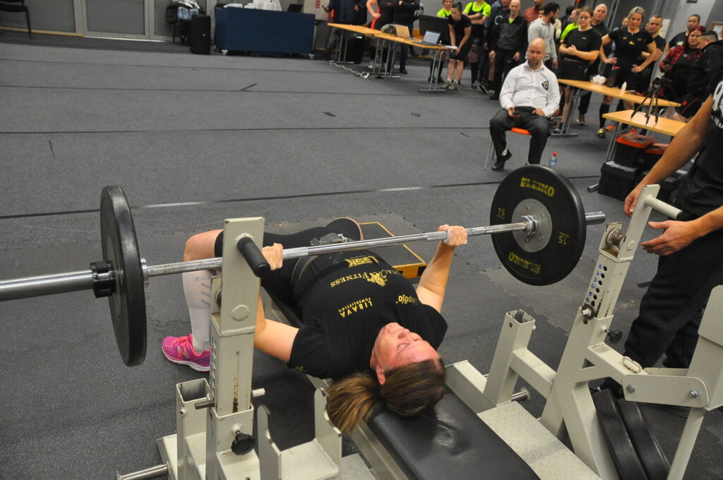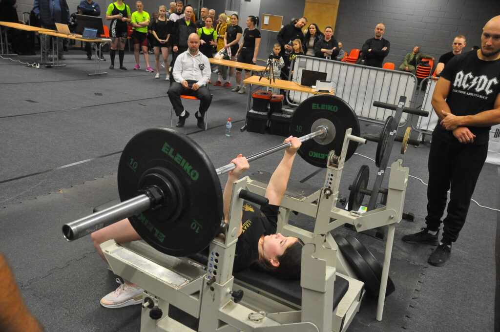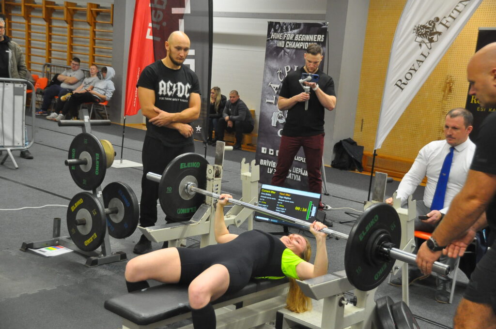FOTO.VIDEO: Dāmas spēkojas Liepājas čempionātā svara stieņa spiešanā guļus