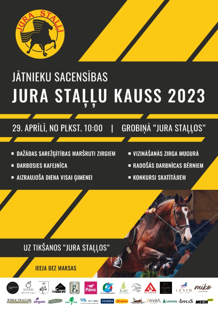 Sestdien, 29. aprīlī, Grobiņā, sporta biedrība “Jura staļļi” teritorijā notiks sacensības “Jura staļļu kauss 2023”. Sacensības sāksies pulksten 10, bet pulksten 12 būs oficiāla sacensību atklāšana ar Dienvidkurzemes novada priekšsēdētāja Aivara Priedola uzrunu.