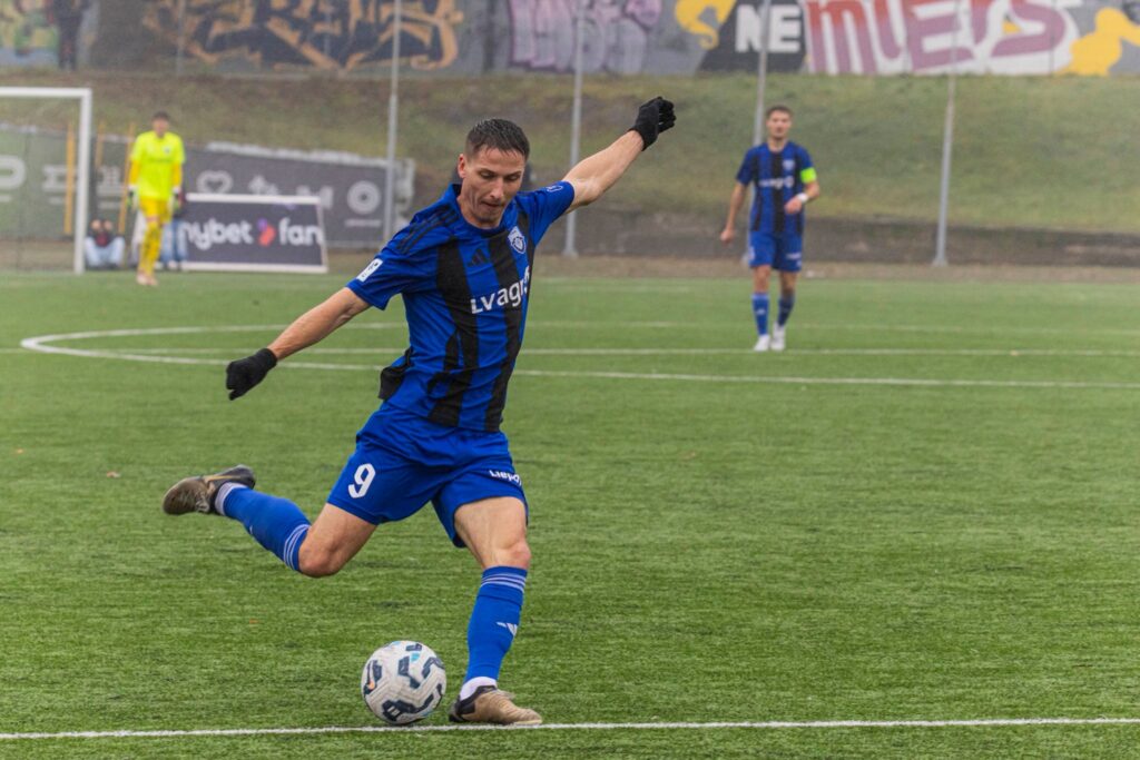 “Grobiņa” svētdien Rīgā uzvarēja “JDFS Alberts” komandu otrajā pārspēlē un saglabāja vietu Latvijas futbola virslīgā arī 2026. gada sezonā.