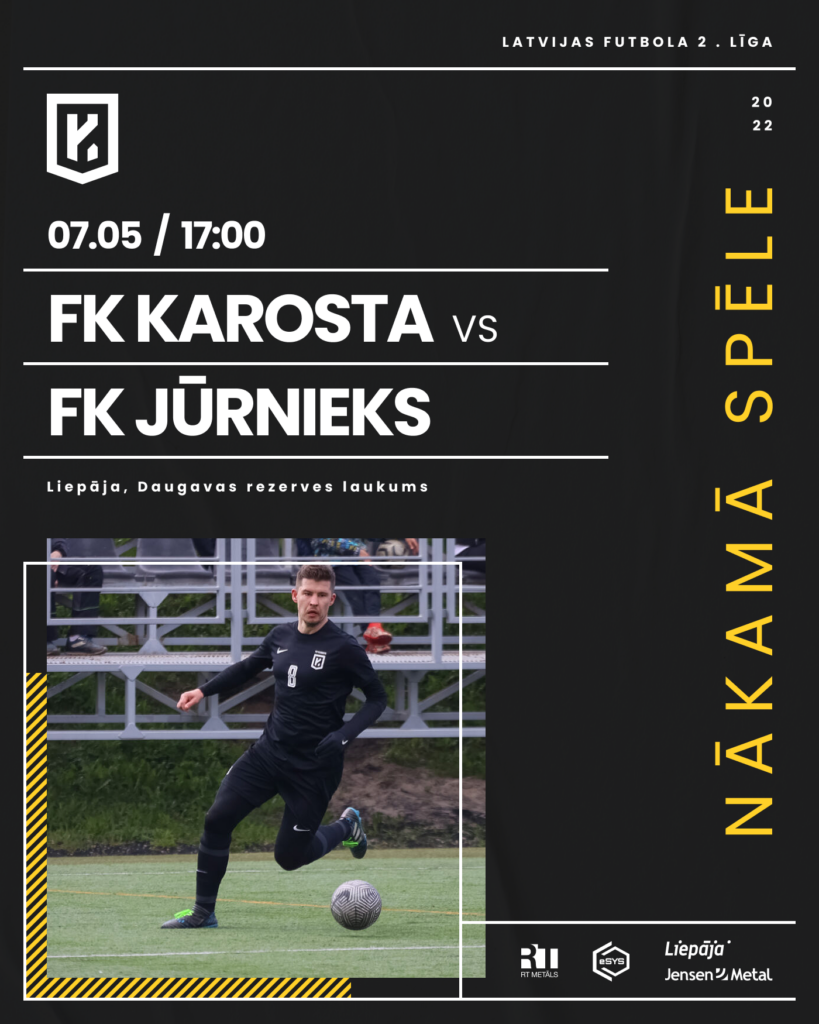“Karostas” futbolisti sestdien spēlēs ar FK “Jūrnieks” vienību. Ieeja skatītājiem – brīva, portālam “ReKurZeme” ziņo kluba vadība.