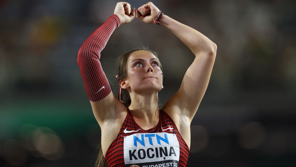 Pēc pirmās metienu sērijas abas Latvijas šķēpmetējas bija labāko astotniekā, kas turpina sacensības finālā, taču labāko astotniekā izdevās iekļūt vien Kociņai, kura ceturtajā mēģinājumā ar rezultātu 63,18 metri izvirzījās otrajā vietā, vēsta LETA.