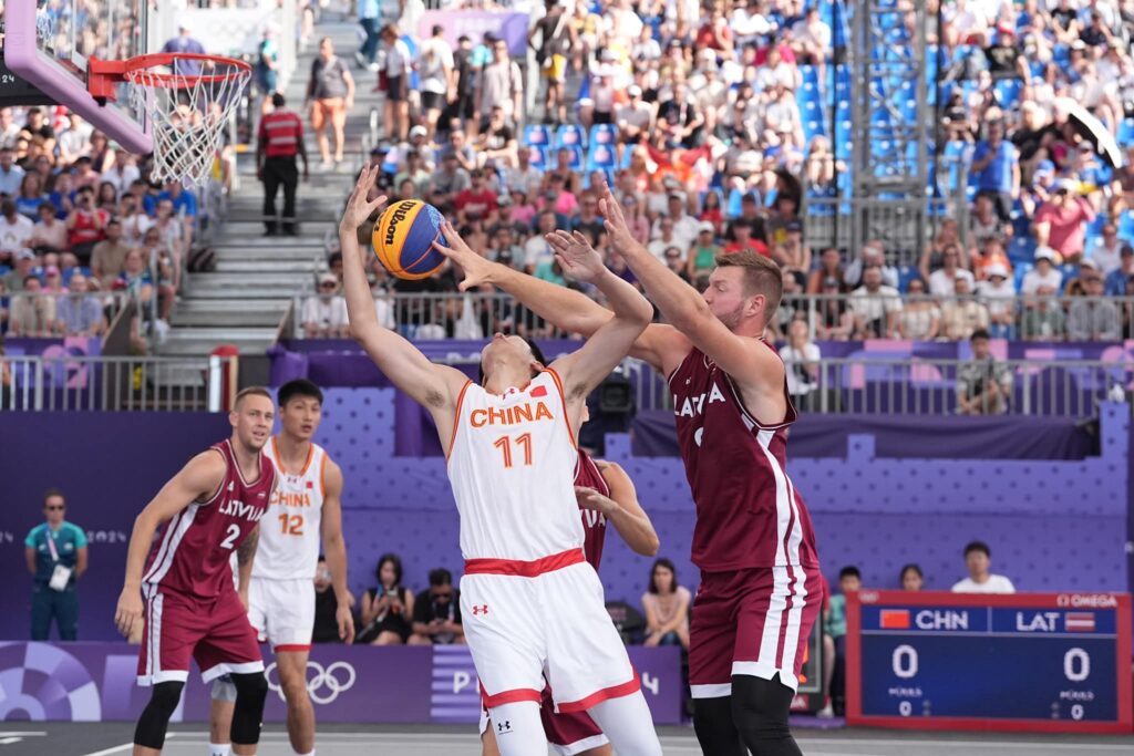 3×3 basketbola turnīra spēle starp Latvijas un Ķīnas valstsvienībām 2024.gada vasaras olimpiskajās spēlēs Parīzē.