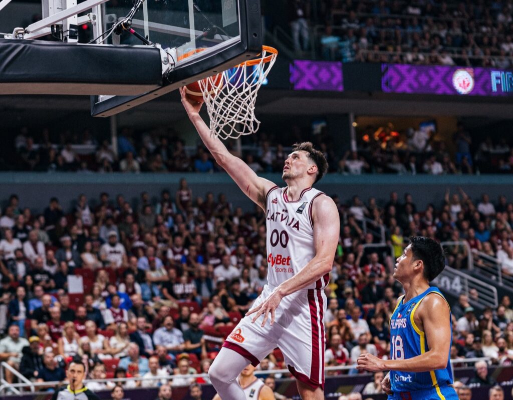 Latvijas vīriešu basketbola izlase trešdien Rīgā par spīti zaudējumam Filipīnām Parīzes olimpisko spēļu kvalifikācijas turnīra mačā nodrošināja vietu pusfinālā.