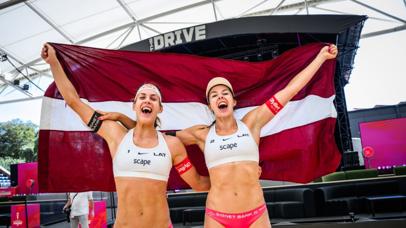 Latvijas duets Graudiņa/Samoilova uzvar pasaules čempionātā pludmales volejbolā
