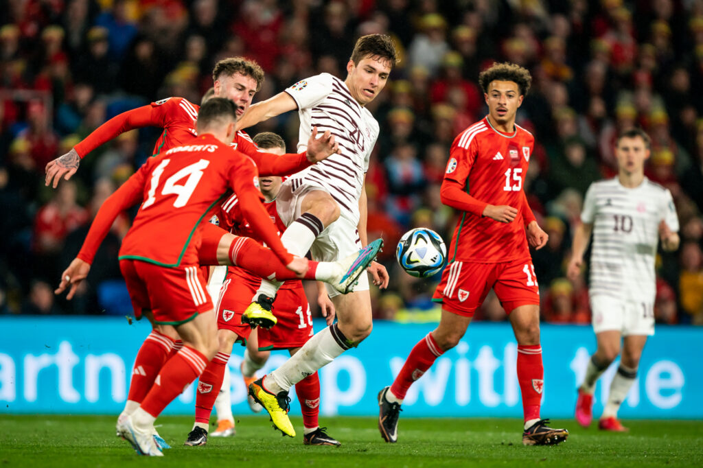 Velsas izlases sastāvs: Denijs Vords, Kriss Mephems, Džo Rodons, Konors Robertss, Neko Viljamss, Ītens Ampadu, Ārons Remzijs (Olivers Kūpers, 90+2.min.), Džo Morels, Herijs Vilsons (Bendžamins Kabango, 90+4.min.), Daniels Džeimss (Neitans Broudheds, 73.min.), Kīfers Mūrs.