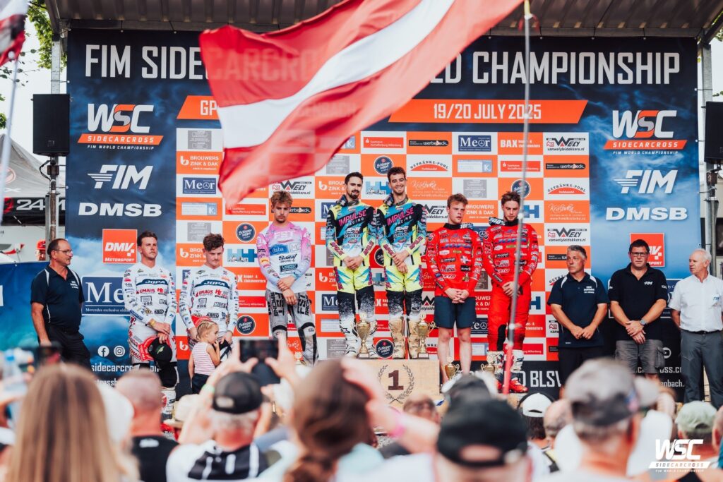 Latvijas motosportisti Daniels un Bruno Lielbārži svētdien Vācijā pasaules motokrosa čempionāta ekipāžām sestajā posmā izcīnīja otro vietu.