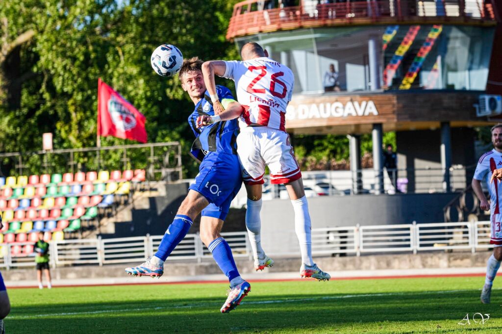 Vēl pēc trīs minūtēm bumba otrreiz nonāca “Daugavpils” vārtos, precīzu sitienu pēc Karašimas piespēles izpildot Klementē.