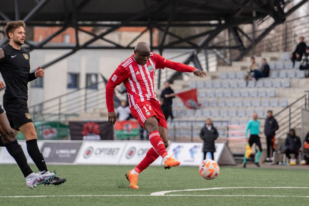 Laukuma saimnieki izvirzījās vadībā spēles 34.minūtē, kad Davids Anane ar tālu sitienu no metriem 30 raidīja bumbu “Audas” vārtos. Bumba trāpīja pa pārliktni un ielidoja vārtu labajā stūrī.