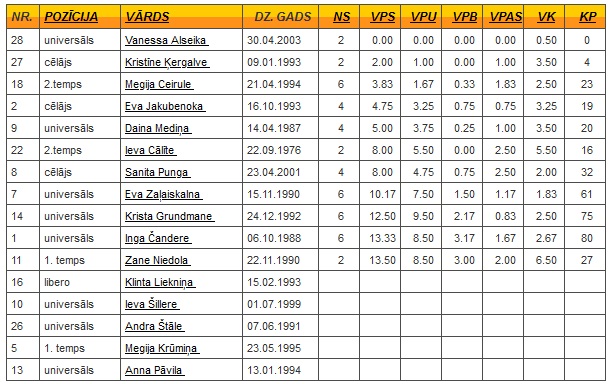 EVL organizatori katru spēli nodrošina ar profesionāliem tiesnešiem, sekretariātu, video tiešraidi no spēlēm, kā arī spēlētāju statistiku, kas sniedz plašāku ieskatu gūto punktu sadalījumā. Gūtie punkti tiek uzskaitīti katram spēlētājam individuāli un šobrīd ar 80 gūtiem punktiem un sešām aizvadītām spēlēm “Liepājas” rezultatīvākā spēlētāja ir Inga Čandere.