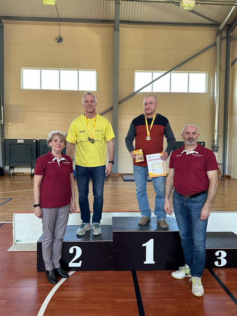 veterānu spēlēs nolēma pārbaudīt savus spēkus arī spiešanā guļus. - Mareks Pūķis vīru konkurencē vecuma grupā Veterāni 50+ gadi (50-59) kategorijā līdz
