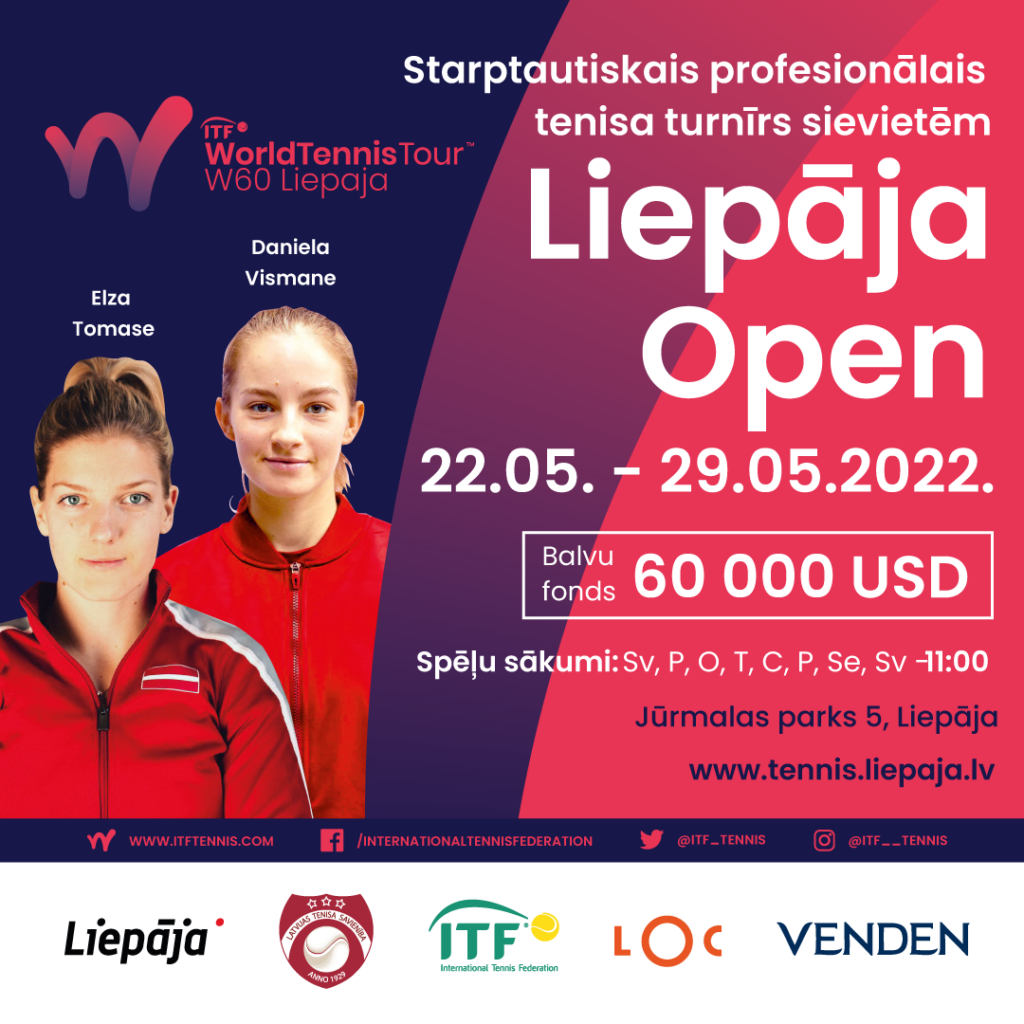 No 22. līdz 29.maijam tenisa kortos Jūrmalas parkā, Liepājā, norisināsies ITF W-60 kategorijas sacensības sievietēm “Liepaja Open” ar 60 000 ASV dolāru balvu fondu. Francijas atklātā čempionāta laikā tās būs augstākās raudzes ITF sacensības Eiropā.