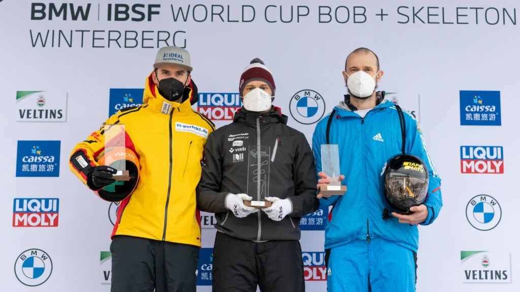 Latvijas skeletonists Martins Dukurs piektdien Vinterbergas trasē Vācijā izcīnīja uzvaru Pasaules kausa septītā posma sacensībās un kļuva par kopvērtējuma līderi, kamēr Tomass Dukurs bija piektajā vietā.
