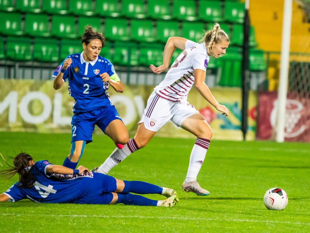 Latvijas sieviešu futbola izlase otrdien Kišiņevā UEFA Nāciju līgas ceturtajā mačā atspēlējās no 1:3 un cīņu ar Moldovu noslēdza neizšķirti ar 3:3 (0:1).