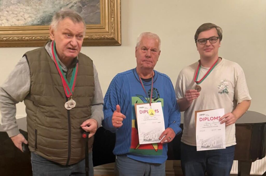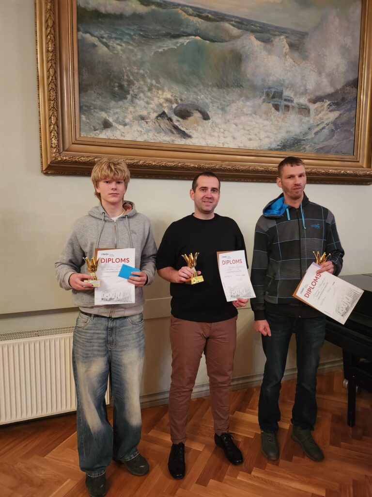 Ātrspēles čempionātā 1. – 3. vietu ieguvēji: Āris Ozoliņš, Vitālijs Daškevičs un Iļja Šarakovs, visi no Liepājas.”