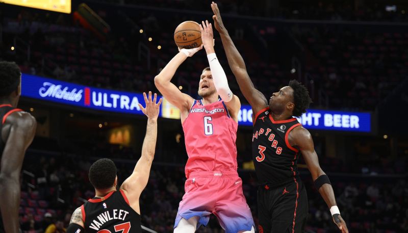 “Wizards” savā laukumā ar rezultātu 119:108 (24:20, 35:30, 30:28, 30:30) pārspēja Toronto “Raptors”, vēsta LETA.