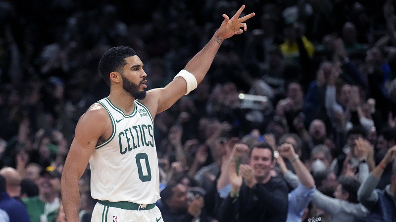 Spēles rezultatīvākais spēlētājs Džeisons Teitums. Foto: AP/Scanpix
