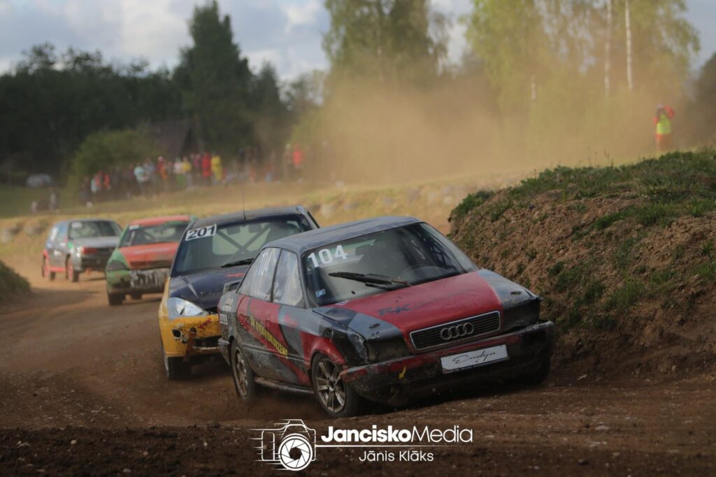Folkreisa Vasaras kausa izcīņas trešajā posmā Vecpils autotrasē priekulniecei treniņos bija bail no lielā trampalīna un džokera, bet kvalifikācijās tas viss jau aizmirsās. “Šajās sacensībās saņēmu arī savu pirmo sodu – par konkurenta sagriešanu. Pēc tam gan sagrieza arī mani. Karma eksistē 😀 Ar savu braukšanu pat pirmo reizi iekļuvu pusfinālā, bet svarīgākais man tas dāmu fināls. Te nu arī bija jautrība. Dāmu finālā bija pārbrauciens, jo kāda no dāmām uztaisīja pāragru startu. Tad nu atkārtotajā braucienā mans auto noslāpa. Dusma liela, bet braucu pakaļ pārējām, un tad jau sākās arī stumdīšanās ar konkurenti. Izvēlos ne to labāko trajektoriju trampalīnā, konkurente mani sagriež, palieku uz vaļņa. Pēc tam turpinu braukt, un finišēju kā piektā. Sacensību noslēgumā jau atkal mašīnu pirkšana, un mūsu uzbūvēto auto nopirka. Te nu gan bija asaras pa gaisu, jo vienas sacensības laikā biju tik ļoti apradusi ar šo auto, un otrs tas, ka auto ir pašu taisīts, padarīja to visu procesu sāpīgu. Bet man sanāca iegādāties vismaz citu auto – “Audi A4”. Tomēr pāris dienas vēlāk uztaisījām barteri ar mana auto jauno īpašnieku, un es dabūju atpakaļ savu mīļo “Audi 80″,” priecājas priekulniece.