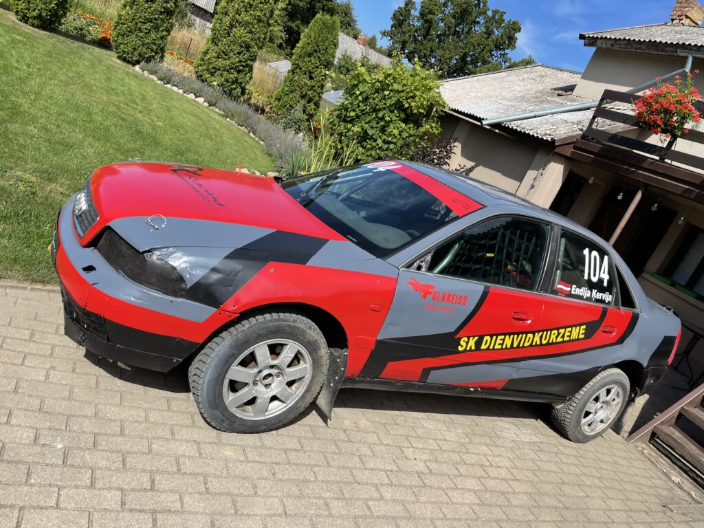 “Ar ko tad sākt. 2021. gada vasarā iegādājos drošības jostas ar domu – ja ne pašai, tad gan jau tētim vienalga noderēs. Pēc laika iegādājos arī ķiveri un cimdus. Un nu tad arī nozīmīgais 2021. gada 2. oktobris, kad iegādājos savu pirmo Folkreisa auto – Audi 80 B4. Tad nu arī sākās darbošanās, lai vispār izmēģinātu auto, kas no viņa sagaidāms. Iegādājos arī atlikušo ekipējumu – sēdekli, drošības sietu, kombinezonu, apavus, balaklavu un vēl šādus tādus sīkumus. Auto sakārtojām, nokrāsojām un biju gatava startēt,” stāsta E. Ķervija.