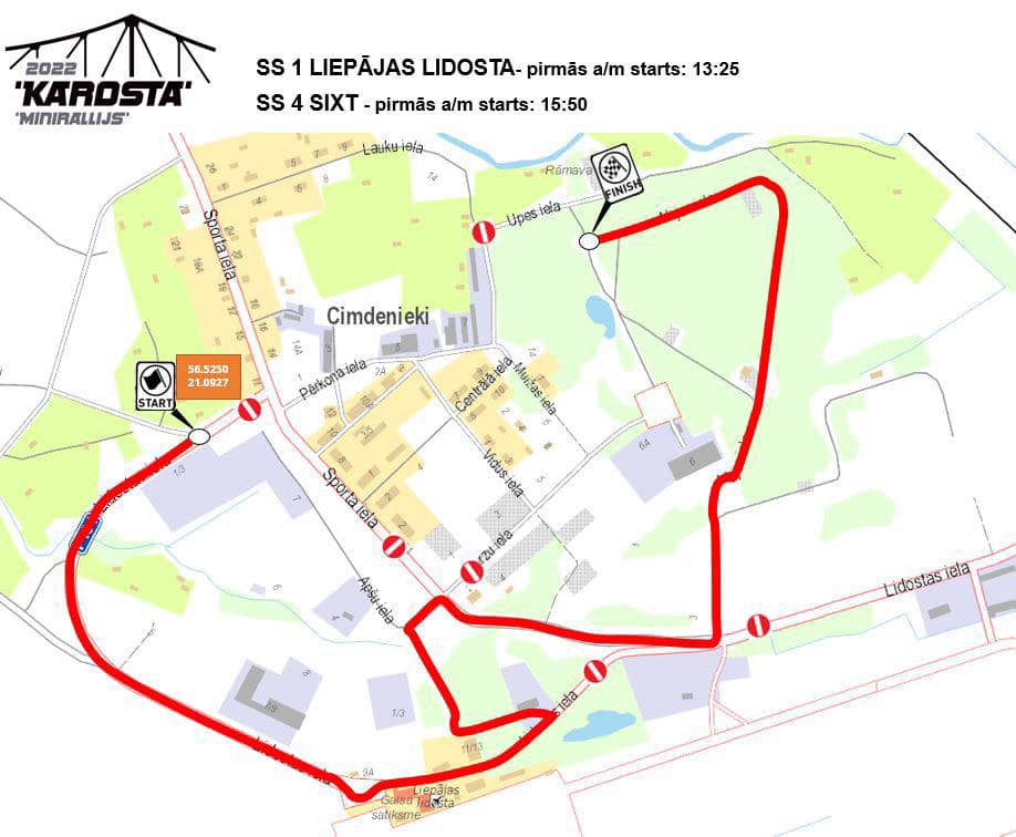 Minirallija ātrumposmi visas dienas garumā norisināsies Liepājā, Karostā un Dienvidkurzemes novada Cimdeniekos un Vērgales pagastā.