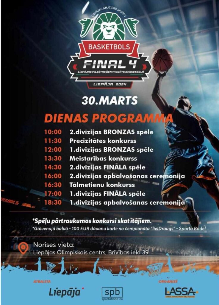 Izšķirošās Liepājas pilsētas čempionāta spēles par medaļām norisināsies 30. martā Liepājas Olimpiskajā centrā. Pulksten 10 otrajā divīzijā par bronzas medaļām spēlēs “Līvas kapi” un “Fēnikss/Grobiņa”. Pulksten 12 pirmajā divīzijā par bronzas medaļām spēlēs “Gavieze” un “ODS”. Pulksten 14.30 otrās divīzijas finālā spēkosies “Grobiņas vikingi” un “Lesjafors”. Pulksten 17 pirmās divīzijas finālā spēlēs “Nīca/BLi” un “Vergale”.