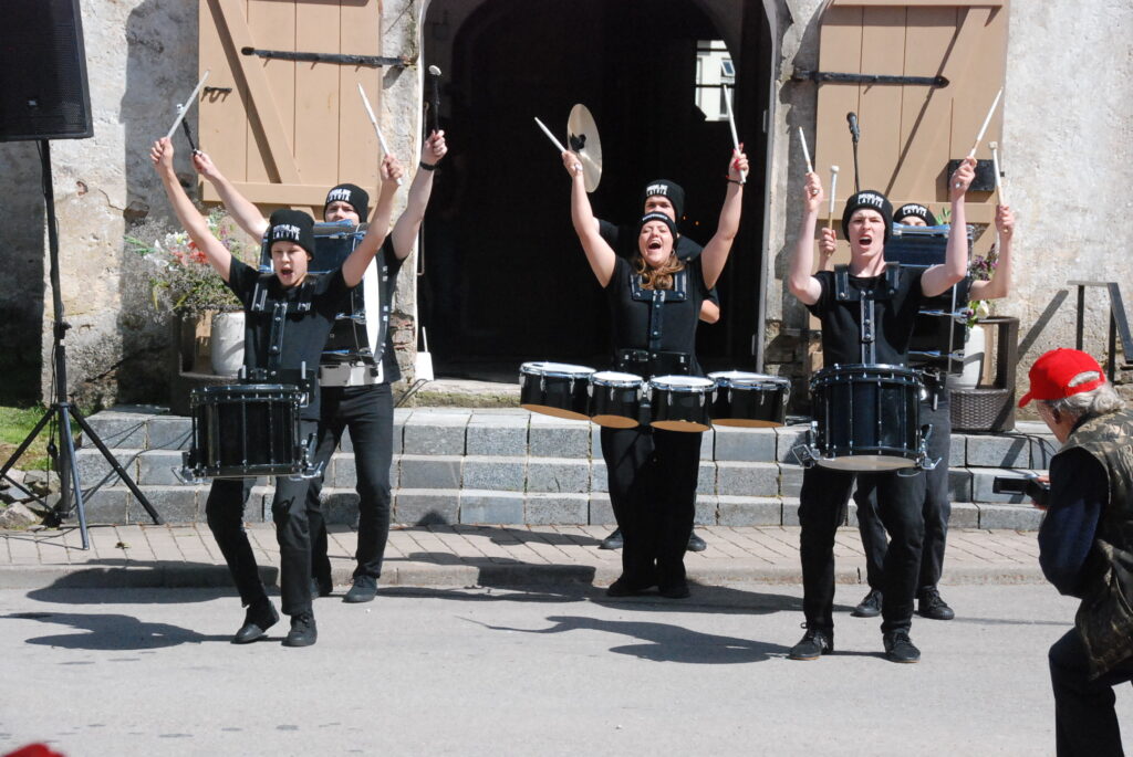 Video no Durbes pilsētas svētkiem mirklī, kad baznīcas laukumā ieradās riteņbraucēju parādes dalībnieki un uzstājās Andžeja Grauda bungu skolas audzēkņi.