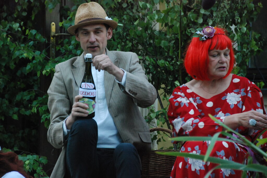 Video fragmenti no Vecpils amatierteātra “Vai mīļā” un folkloras kopas “Dižlāņu īve” kopdarba komēdijizrādes “Krizdoļu vīns”.